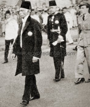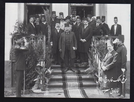 الخديوى عباس حلمى الثانى ومعه كبار رجال الدولة فى حفل وضع حجر الاساس الاول للجامعة المصرية الاهلية