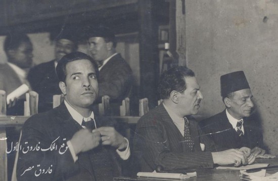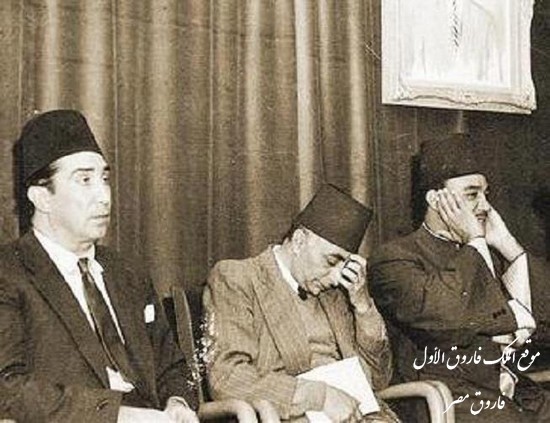 الفنان يوسف وهبى والشاعر ابراهيم ناجى والشيخ طه الفشنى فى جنازة الفنانة اسمهان