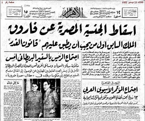 الصحف المصرية تشير الى قيام الجيش بحركه عسكرية ضد النظام فى المملكه المصرية وخلع الملك فاروق وتنازله عن العرش لصالح ابنه الأمير احمد فؤاد