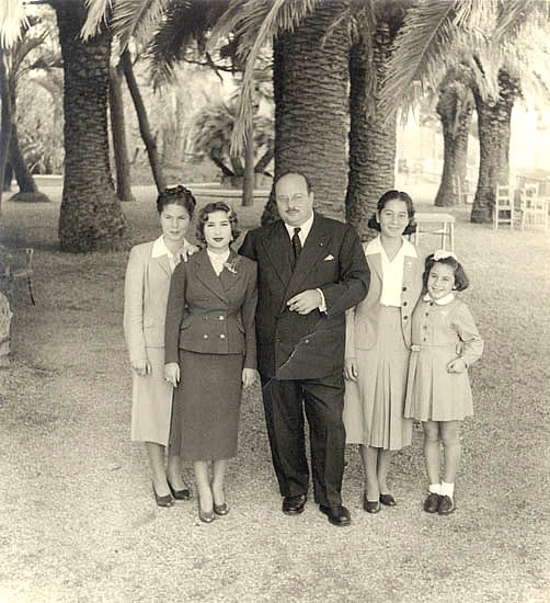 صورة تجمع الملك فاروق والملكة ناريمان وبناته من الملكة فريدة - الاميرات / فوزية - فريال - فادية فى المنفى