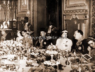 فاروق اثناء استقبال ولى عهد بلجيكا بقصر
