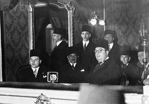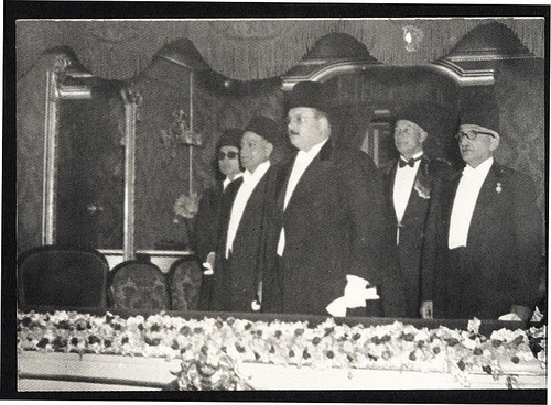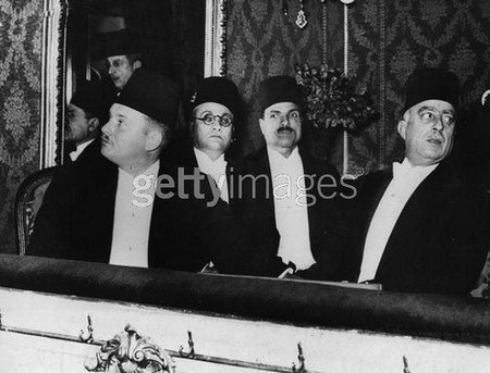 الملك فاروق الاول ومصطفى النحاس باشا وعبد اللطيف باشا طلعت وعمر باشا فتحى فى دار الاوبرا