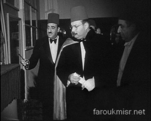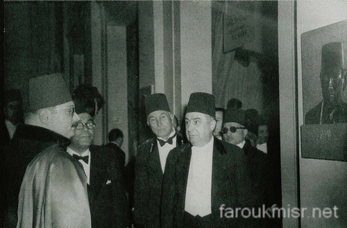 الملك فاروق الاول ويظهر فى الصورة سليمان بك نجيب فى دار الاوبرا المصرية