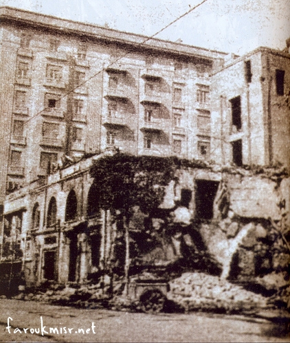 • و ما أن انتصف اليوم حتي بدأت الشرارة الأولي للحريق من ميدان الأوبرا باشعال النيران في كازينو أوبرا ، و انتشرت النيران في فندق شبرد و نادي السيارات و بنك بركليز ، و غيرها من المتاجر و مكاتب الشركات و دور السينما و الفنادق و البنوك ، و كان التركيز علي الأماكن والملاهي الليلية التي ارتبطت بارتياد فاروق لها و المؤسسات ذات العلاقة بالمصالح البريطانية .