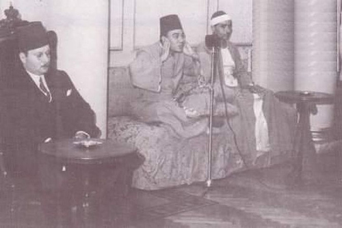 الملك فاروق يستمع للشيخين مصطفى إسماعيل وأبو العينين شعيشع